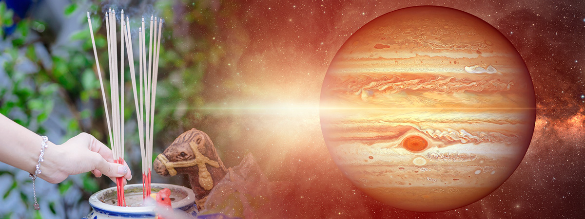 4. ณ เวลาที่พระพฤหัสบดี เสด็จเข้าสู่ราศีมีน 16.41 น. จุดธูปเทียนที่เตรียมไว้ และเริ่มสวดพระคาถาอรหันต์โปรดสัตว์ "ภะ สัม สัม วิ สะ เท ภะ” (โชคลาภ วาสนา) 19 จบตามกำลังพระพฤหัสบดี ตามด้วยบทสวดบูชาเทพพระพฤหัสบดี