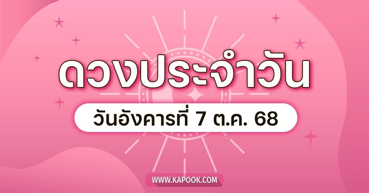 ดูดวงรายวัน ดวงวันนี้แม่น ๆ ฟรี ประจำวันอังคารที่ 7 ตุลาคม 2568 ทั้งดูดวงความรัก ดวงเนื้อคู่ การเงิน การงาน สุขภาพ ชีวิต และครอบครัว สำหรับท่านที่เกิดวันจันทร์-อาทิตย์ และผู้ที่ชื่นชอบการตรวจดวงชะตา และอยากรู้ชะตาชีวิตวันนี้เป็นอย่างไร ตามไป ดูดวงรายวัน กันเลย