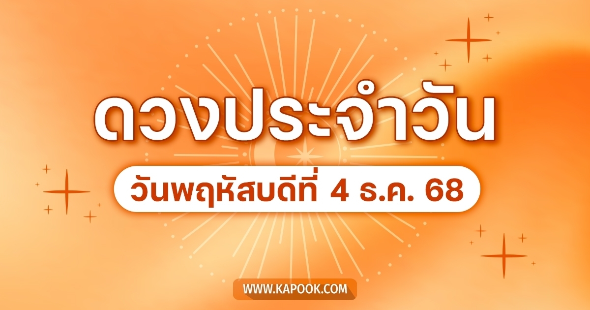 คำพยากรณ์ประจำวันที่ 4 ธันวาคม 2568 ตรงกับวันพฤหัสบดี ขึ้น 14 ค่ำ เดือน 1 ปีมะเส็ง จ.ศ. 1387 ค.ศ. 2025 ฤกษ์บน ดาวจันทร์เกาะกฤตติกา ฤกษ์ล่าง วันปลอด กาลโยค วันอุบาทว์ นักษัตรฤกษ์ที่ 3 โจโรฤกษ์ต่อด้วยภูมิปาโลฤกษ์ ดาวจันทร์เกาะโจโรฤกษ์ และโคจรเข้าเกาะภูมิปาโลฤกษ์ เวลา 16.26 น ห้ามประกอบการมงคล ห้ามถอยรถใหม่ออกจากอู่ ในวิถีแห่งโหราจารย์และโบราณราชประเพณี มักยึดถือวันพฤหัสบดีแรกของเดือนธันวาคม (เดือนอ้าย) เป็นวันสำคัญในการประกอบพิธีไหว้ครูประจำปี หรือทำบุญบ้านประจำปี เพื่อความเป็นสิริมงคล แม้วันนี้จะเป็นวันอุบาทว์ตามกาลโยค แต่กิจการงานบุญที่เป็นกุศลจิตและการแสดงความกตัญญูต่อครูอาจารย์นั้นทำได้เสมอโดยไม่ต้องรอฤกษ์ การงาน ช่วงเช้าระวังการถูกแย่งผลงาน หรือการแข่งขันที่ไม่เป็นธรรม มีปัญหาจุกจิกกวนใจเข้ามาตลอดวัน แต่หลัง 16.30 น. ไปแล้วการเจรจาจะได้ผลหรือราบรื่นขึ้น ความรัก : กระทบกระทั่งกันง่าย อารมณ์บูดบึ้งใส่กันโดยไร้สาเหตุ คู่รัก ควรหลีกเลี่ยงการขุดคุ้ยเรื่องเก่ามาพูด คนโสด ระวังเจอคนคนที่มีเจ้าของแล้วเข้ามาพัวพัน