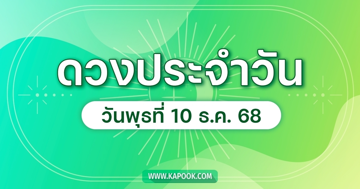 ดูดวงรายวัน ดวงวันนี้แม่น ๆ ฟรี ประจำวันพุธที่ 10 ธันวาคม 2568 ตรงกับวันพุธ แรม 5 ค่ำ เดือน 1 ปีมะเส็ง จ.ศ.1387 ค.ศ. 2025 ทั้งดูดวงความรัก ดวงเนื้อคู่ การเงิน การงาน สุขภาพ ชีวิต และครอบครัว สำหรับท่านที่เกิดวันจันทร์-อาทิตย์ และผู้ที่ชื่นชอบการตรวจดวงชะตา และอยากรู้ชะตาชีวิตวันนี้เป็นอย่างไร ตามไป ดูดวงรายวัน กันเลย