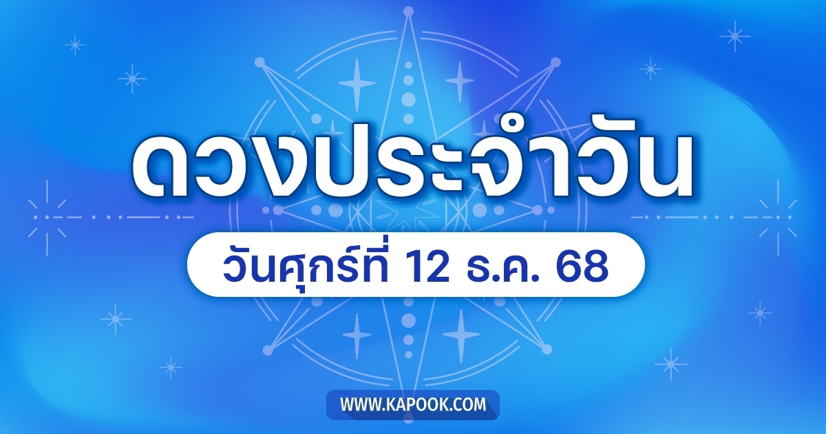 คำพยากรณ์ประจำวันที่ 12 ธันวาคม 2568 ตรงกับวันศุกร์ แรม 7 ค่ำ เดือน 1 ปีมะเส็ง จ.ศ.1387 ค.ศ.2025 ฤกษ์บนดาวจันทร์เกาะอุตรผลคุณี ฤกษ์ล่างวันทรทึก ทินสูร กาลทัณฑ์ มฤตยู ฟู กาลโยควันธงชัย-อธิบดี นักษัตรฤกษ์ที่12โจโรฤกษ์ ฉินทฤกษ์ตลอดวัน ดาวจันทร์เกาะโจโรฤกษ์ ฉินทฤกษ์ตลอดวัน และยกเข้าราศีกันย์เวลา11.52น. ประกอบการมงคลได้(บางเวลา) ห้ามถอยรถใหม่ออกจากอู่ การงาน: เต็มไปด้วยการแย่งชิงและความขัดแย้ง คู่แข่งจะใช้วิธีสกปรกโจมตี ระวังการถูกหักหลังหรือถูกเลื่อยขาเก้าอี้ ห้ามเซ็นสัญญาหรือเริ่มโปรเจกต์ใหม่ เพราะจะนำไปสู่คดีความและการลงโทษ การเงิน: ระวังทรัพย์สินสูญหาย ถูกขโมย หลีกเลี่ยงการลงทุนเพราะมีเกณฑ์ "สูญเปล่า" ความรัก: ระวังคนหน้าเนื้อใจเสือ ที่เข้ามาในวันนี้ คู่รักระวังมีปากเสียงรุนแรงถึงขั้นแตกหัก