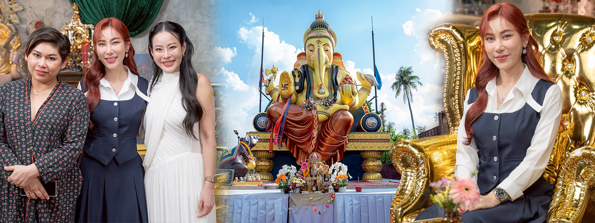 อ.เบ : เนื่องด้วยที่นี่มีหลากหลายองค์เทพ เราสร้างองค์หลักก็คือองค์พ่อพระพิฆเนศ องค์พระมารดาก็คือพระแม่อุมา แล้วก็องค์พ่อพระพระศิวะเจ้า แล้วก็มีท้าวเวสสุวรรณ พอเราข้ามมาอีกฝั่งก็มีนาคราช 9 นาคาธิบดี 8 นาคินี เราจะสร้างทั้งหมด 4 ตระกูล เราอยากให้คนที่เข้ามาสักการะ ให้ถูกให้ควรตามแบบฉบับที่เราตั้งไว้ ตามที่เราประสบความสำเร็จ เพราะถ้าย้อนกลับไป เราได้เคยเอื้อนเอยไว้ว่าถ้าชีวิตเราดีขึ้นเพราะเทพ เราอยากสร้างองค์เทพ เท่าตัวคน เอาไว้ให้คนได้กราบไหว้ เพราะว่าเราเคยธุรกิจล้มละลาย แต่เราดีขึ้นด้วยพระองค์ท่าน พอเราสำเร็จเราก็ทำตามสัจจะวาจา ซึ่งถ้าเล่าเรื่องนี้ 3 วัน 3 คืน ก็ไม่จบ เราดีได้เพราะองค์เทพ เราทำเองทุกอย่างตั้งแต่ถางหญ้า จนกลายเป็นมหาเทวาลัยในวันนี้