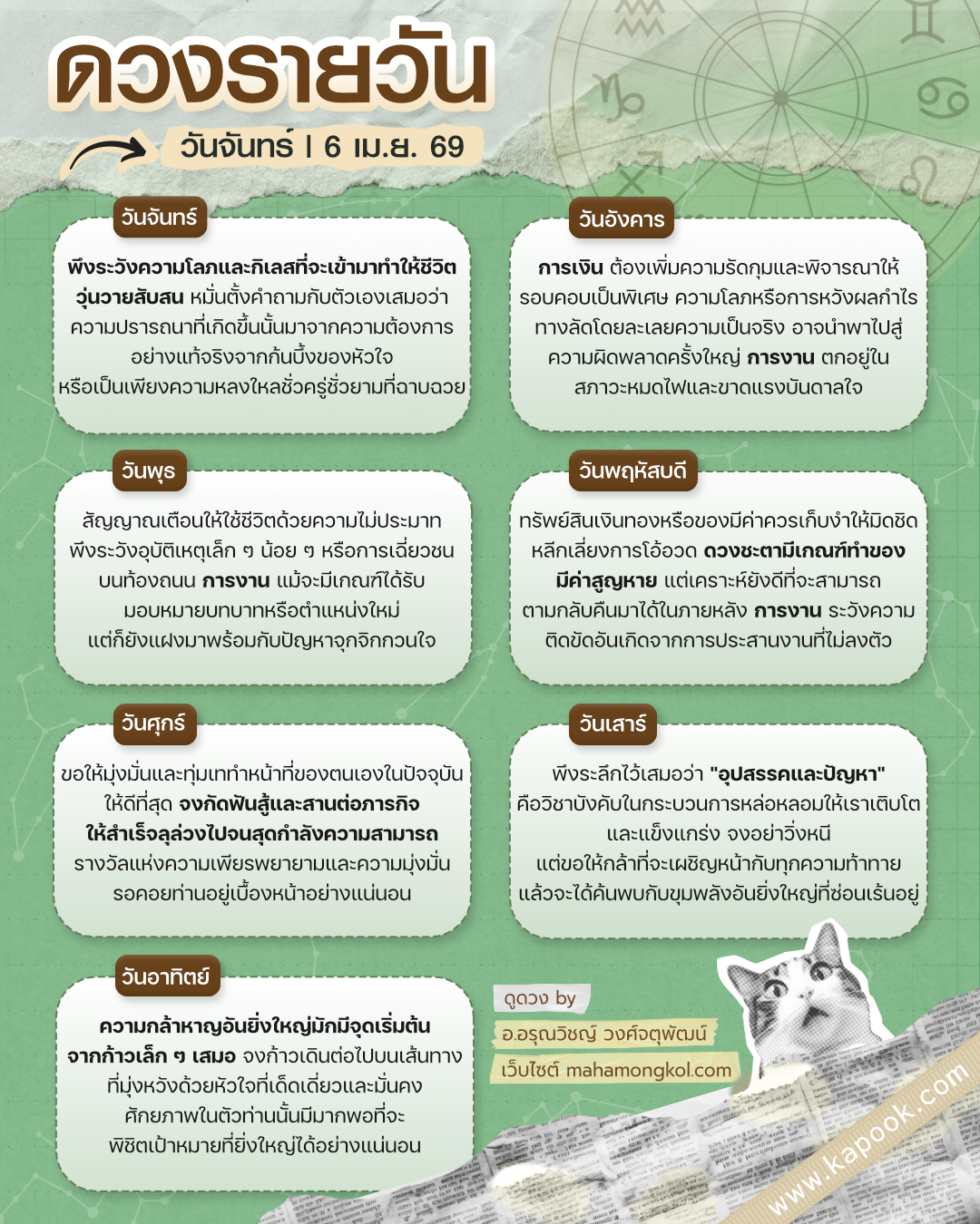 ขอบคุณข้อมูลจาก : อ.อรุณวิชญ์ วงศ์จตุพัฒน์ เว็บไซต์ mahamongkol.com, เฟซบุ๊ก มหามงคล.คอม, Line @Mahamongkol